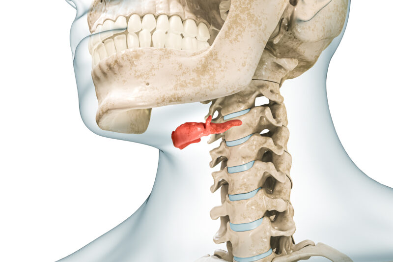 「舌は『舌骨(ぜっこつ)』という骨に付いていますが、この骨が筋肉のバランスで下に引っぱられてしまうと、気道が狭くなります。人間は呼吸をしないと生きていけませんから、狭くなった気道を広げるために、無意識にあごを上げたり、背中を丸めたりしてバランスを取ろうとするのです。